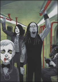 Davis: Not really. The only song that spoke to me was "Every Day is Halloween" by Ministry. And that song spoke to me because I lived in a shit town, and all I heard everywhere I went was "Hey, faggot, what is it -- Halloween". Moore: "Faget" and "Kill You" were so amazing to me. Even though my childhood with my parents was really smooth, I still get what you were saying so deeply. Those are my two favorite KoRn songs. What are your two favorites? Davis: Shit, I don't know. They're all babies to me. I work so fucking hard on them - I really can't choose. I know the new shit we're playing now, and when we do a new album, that shit will be my new favorites. But "Faget" really seems to stick with people. And that was all about high school and everyone picking on me. Moore: Faget is such a harsh word. It's so amazing you made that a song title. Davis: It is harsh, and that's what was portrayed in my head every day at school. And "Kill You" was about my fucking stepmother. I had so many years of built-up aggression towards that bitch. I just let it all out in that message. Moore: I know what you mean. On the record we just released, there's a song called "Afterbirth," which is about me finding out 1 year ago that I was adopted. I'd known my biological parents without really knowing they were my real parents. It was really rough, and I was just like, fuck everybody. That was a really hard song for me to do. Davis: That's cool, man. It makes you get your feelings out, and for me, that's what music has always been about. Moore: What do you do to keep your voice healthy on the road? Do you have warm-ups and warm-downs? Are you cautious of what you eat? Davis: I don't eat dairy before I go out, and I warm up 25 minutes to 30 minutes before the show, and I warm down another 15 minutes after. It's pretty intensive. Moore: My regime is really, really intensive. I've got a blood vessel in my vocal cord that I have to have surgery for soon. I've had the worst vocal problems that have forced us to cancel shows. Have you ever gone through this? Davis: No, all the doctors don't understand why my vocal cords are pristine. It's from taking care of them, I guess. Moore: I used to not take care of mine. I was singing way out of my range. I wouldn't rest, I wouldn't warm up or warm down. And I developed a cyst on my vocal cords. At one point, I couldn't even speak properly. If I hadn't got it checked, I'd never be able to sing again. Davis: Shit, dude. Take care of yourself. Moore: What do you like to do for fun when you're at home? Davis: I'm really into World of Warcraft and other video games. Sometimes I write, but mostly when I'm home, I'm with my family. Oh, I also go shooting. Moore: Shooting guns? Davis: Yeah, I'm a gun freak. I got a big collection, and sometimes I go up to Arizona and do precision shooting. I shoot at shit a mile and a half away. It's another form of therapy. Moore: On tour, sometimes I feel really lonely. Even though you're around thousands of people, it feels like you can't talk to anybody. Have you felt like that? Davis: Yeah, definitely, but you've just gotta deal with it. The best thing for me is video games and masterbation. You just don't think about the lonliness. Again, I have a wife, and I can call her up and talk to her, and she's my best friend. It's nice to have that. Moore: I thought I had a lot more friends than I ended up having for real. Was there a stage when you realised that there are people who don't give a fuck about you and they just want stuff from you? Davis: Dude, I have one friend left from my childhood, and that's it. Everyone else I fucked off. My true friends are my band. The people we tour with, my managers, and my wife and kids. That's what I got. And once you get in a band and start getting any amount of success, they're gonna leech on to that. |